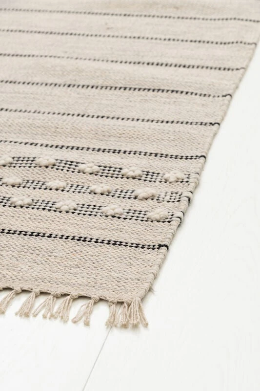 4Living Alviira on sileäksi kudottu matto, joka luo kodikasta tunnelmaa sen kauniilla vaaleanharmaalla sävyllään. Yksityiskohtina sen molemmissa päissä on hapsut sekä pienet tuftatut kohokuviot.