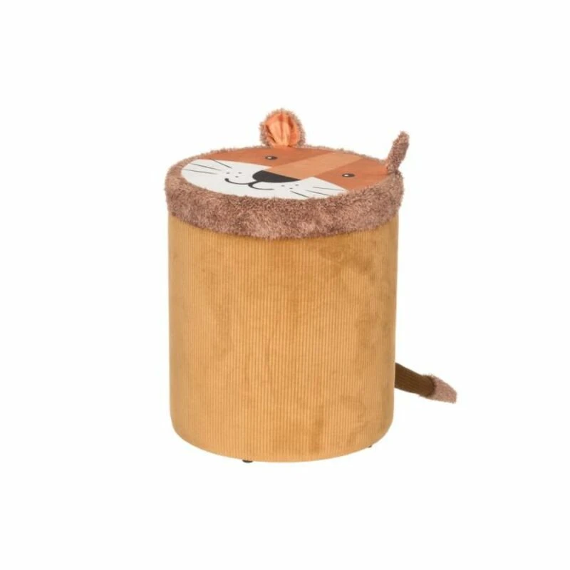Lastenhuoneen sisustuksen katseenvangitsijaksi ihastuttava Leijona jakkara. Jakkaran runko on päällystetty vakosametilla ja päällinen pehmustettu leijonan naama. Jakkaralla on myös suloinen häntä. Rahin sisäpuolelta löytyy säilytystilaa, jonka tilavuus on 31 L. Rahin enimmäiskantavuus on 80 kg.