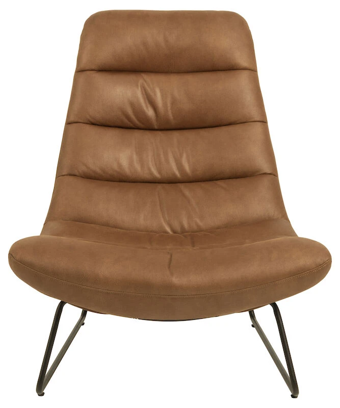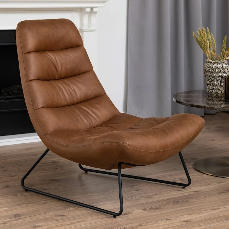 Muhkea Milford nojatuoli on verhoiltu kestävällä bonded-nahalla. Nojatuolin kaareva muotoilu sekä näyttää, että tuntuu miellyttävältä. Kokonaisuuden viimeistelee mustaksi maalatut kelkkajalat yhdessä näyttävien vaakaompeleiden kanssa.
