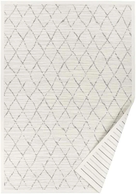 Ajattoman tyylikkäästi kuvioitu Narma Vao kaksipuolinen puuvillamatto. Erilaiset kuosit eri puolilla mattoa, joten pystyt helposti vaihtamaan tunnelmaa mattoa kääntäen. Toisella puolen salmiakkikuosi, toisella raitakuosi.