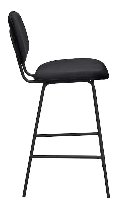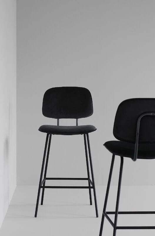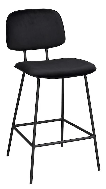 Bryan -baarituolissa on moderni muotoilu. Kokomusta tuoli sopii loistavasti esimerkiksi puunvärisen saarekkeen pariksi. Tuolin jalat ovat metallia ja istuinosa mukavaa samettia.
