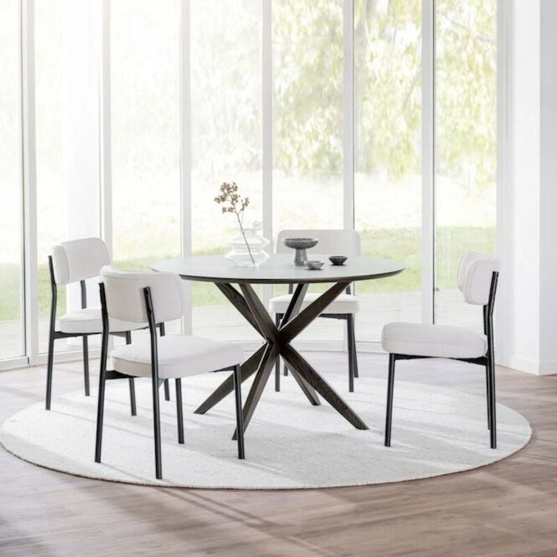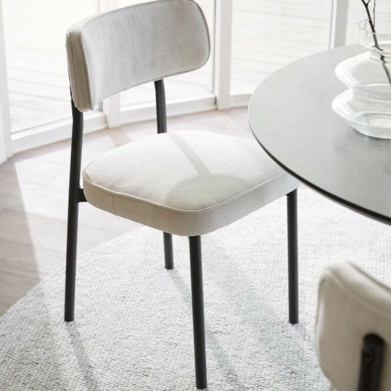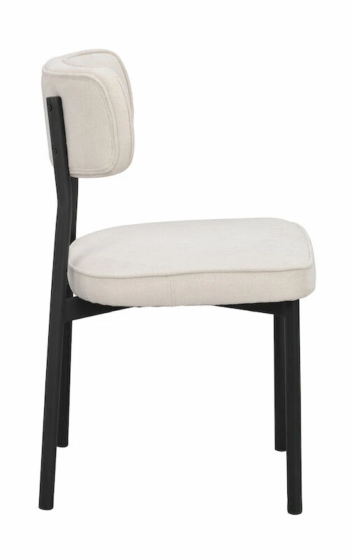 Rowico Paisley tuoli on FSC-sertifioitu ja siinä on kestävä vaalea beige kangas, joka on valmistettu kierrätetyistä PET-pulloista. Tämä tarkoittaa, että PET-pullot eivät päätyneet mereen, vaan neon prossesoitu laadukkaaksi pehmeäksi kankaaksi, joka sopii täydellisesti huonekaluihin. Pyöristetty selkänoja tekee tuolista erittäin mukavan istua. Trendikkäät mustaksi maalatut metallijalat antavat tuolille ainutlaatuisen ilmeen, joka sopii useimpiin ruokapöytiin.