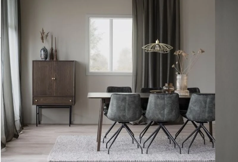 Tyylikäs ja moderni Rowico Rossport tuoli samettiverhoilulla. Sopii yhtälailla ruokapöydän tuoliksi kuin työtuoliksi. Pyörivä jalka, 180 astetta tuo tuoliin uutta ulottuvuutta ja helpottaa tuoliin istumista sekä nousemista. Tuolin jalat ovat pulverimaalattua mustaa metallia. Yhdistettävissä useimpien ruokapöytien kanssa.