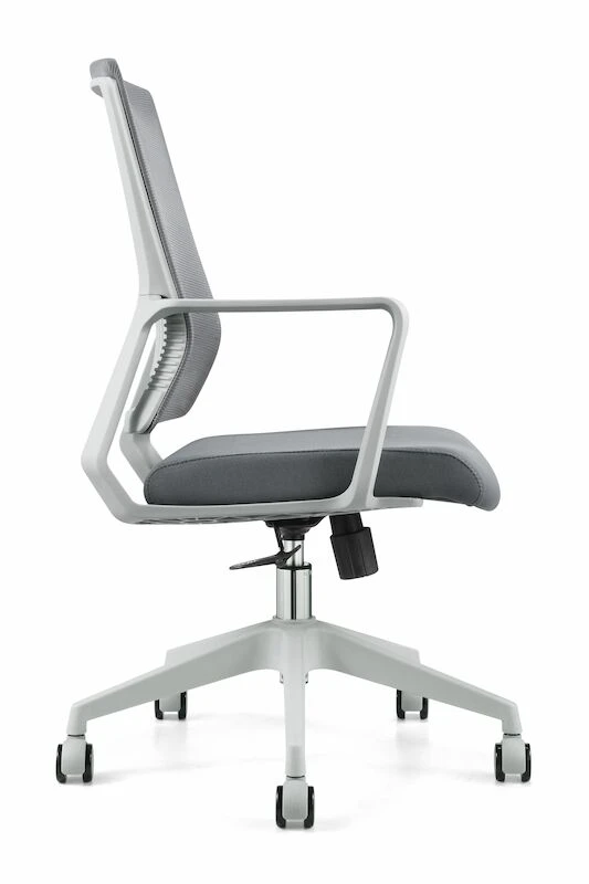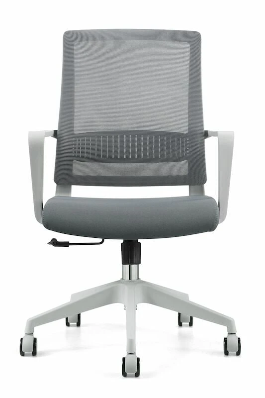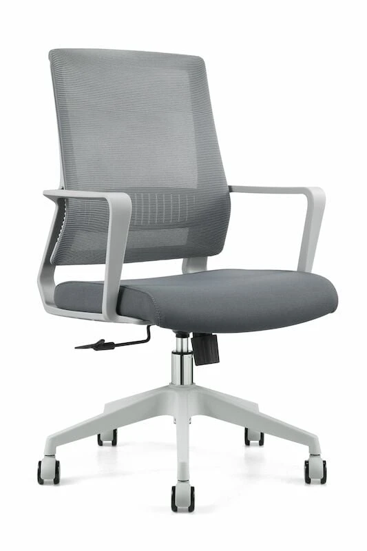 Matalaselkäinen Fox työtuoli. Selkänoja on hengittävää polyester-verkkokangasta. Selkänoja on ergonomisesti muotoiltu. Työtuolissa on käsinojat ja pehmustettu istuin. Laadukas kaasujousimekanismi, silikonipyörät ja keinumekanismi. Istuinkorkeus säädettävissä 44-53 cm välillä.