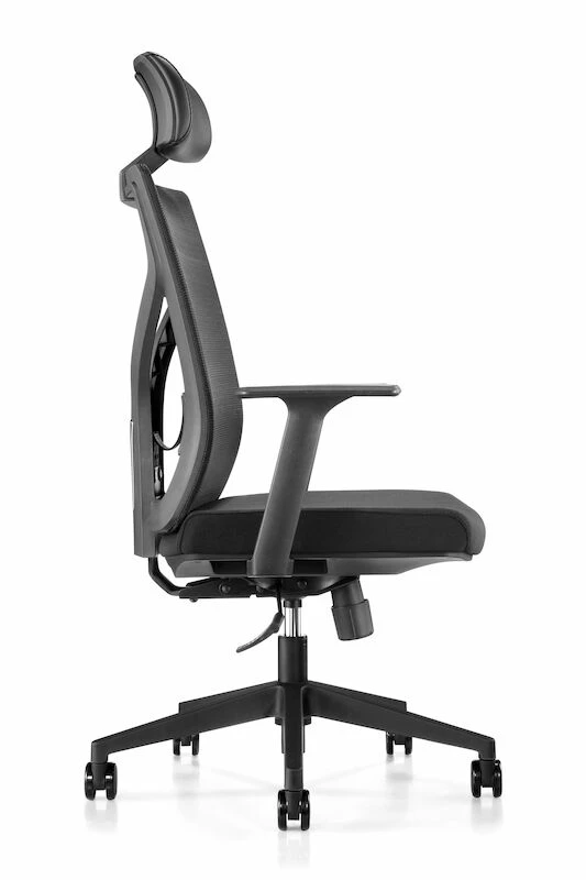Ergonomisesti muotoiltu korkeaselkäinen Joel työtuoli. Selkänojassa oleva ristiselkätuki tukee selkääsi työpäivän aikana. Käsinojat ja miellyttävä vaahtomuovilla pehmustettu istuinosa. Laadukkaassa tuolissa on kaasujousi, silikonipyörät ja keinumekanismi. Tuolin selkänoja on hengittävää polyester-verkkokangasta. Istuinkorkeus on säädettävissä 44-54 cm välillä. Tarkempia mittatietoja näet alapuolella olevasti pienemmästä kuvasta.