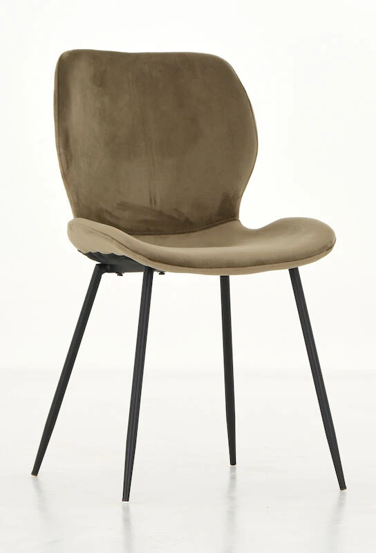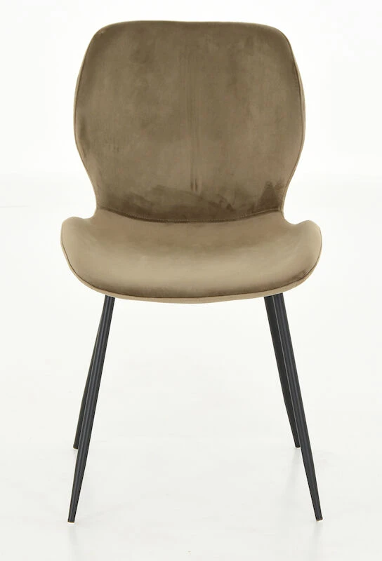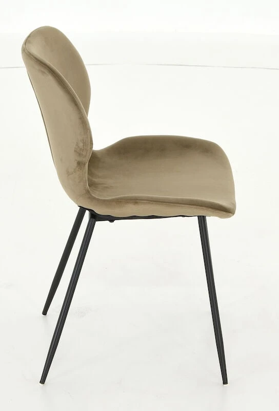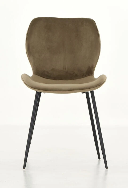 Kaunis samettiverhoiltu Aava tuoli. Tuolin istuin- ja selkäosa on verhoiltu pehmeällä samettikankaalla. Tuolin jalkaosa on valmistettu mustaksi maalatusta metallista. Tuoli toimitetaan jalkaosa irrallaan.