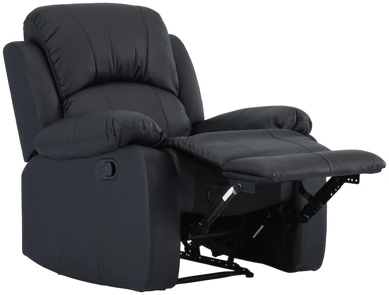 Studio mekanismituolissa voit nostaa jalat ylös ja rentoutua TV:n tai takkatulen ääressä. Valittavana on tyylikäs musta ja ylellinen valkoinen verhoilu. Studio mekanismituoli on verhoiltu kulutuspinnoiltaan hyvin kulutusta kestävällä Bonded-keinonahalla ja taustat on verhoiltu PU-keinonahalla. Bonded-keinonahka on valmistettu useista eri materiaaleista, mukana myös 20% aitoa nahkaa (huomattavasti kestävämpi kuin oikea keinonahka). Tuolissa on laadukas ja helposti käytettävä mekanismi, jolla voit nostaa jalkatuen sekä vapaasti liu’uttaa selkänojan kaltevuuden mieleiseesi asentoon. Selkänojan saa kuvan mukaisesti lähes makuuasentoon. Sohvan syvyys on 88-158 cm.