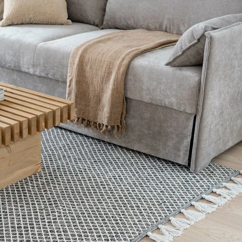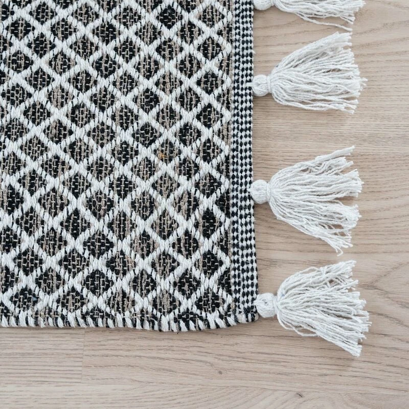 Tyrsky puuvillamatossa on kaunis toistuva kuvio, joka väriensä ansiosta ei ole häirisevä. Tyrsky sopii hyvin vaikka makuuhuoneen lattialle, sillä se on todella miellyttävä jaloille. Tyrsky on Intiassa käsinkudottu matto. Matolla on SEDEXin SMETA sertifikaatti, joka kertoo eettisestä kaupankäynnistä.