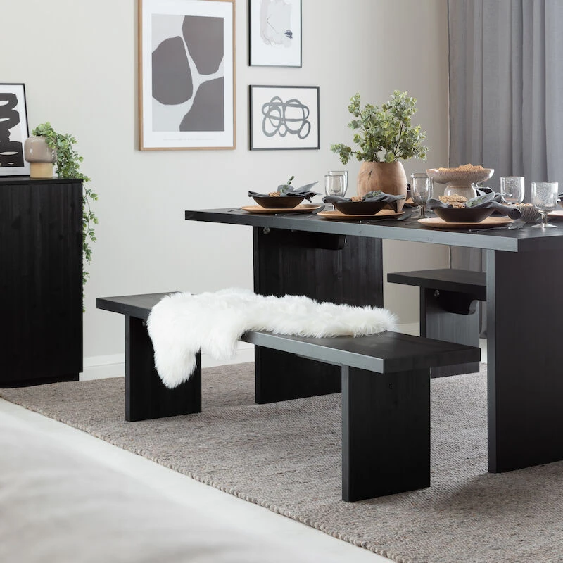 Hiekan ja hiilen värinen penkki on pintakäsitelty vesiohenteisella, yksikomponenttisella akrylaattilakalla, johon on lisätty petsi. Sisäkäyttöön tarkoitettu, M1-luokiteltu lakka on kiiltoasteeltaan himmeä. Puuvalmis penkki on käsittelemätön, jonka voit halutessasi käsitellä mieleiseksesi. Puuvalmiiseen pintaan ei ole tehty pintakäsittelyn vaatimaa välihiontaa. Laadukkaan lopputuloksen saamiseksi suosittelemme kevyttä hiontaa ennen käsittelyä.