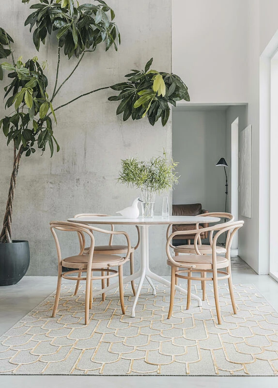 VM Carpet Paanu matossa on laadukas, kudottu villapohja. Pohjaan on yhdistetty pehmeä silkinhohtoinen viskoosinukka. Hienostunut kuviointi tuo sisustukseen glamouria, mutta klassista ja modernia hehkua. Maton reunat on kantattu pellavakantilla ja pohjassa on liukumaton EVAPOLYTEX, joka tekee matosta ryhdikkään. Pohjausmateriaali sopii kaikille lattiamateriaaleille sekä lattialämmitteisiin tiloihin. Pohja ei jätä jälkiä, on hajuton ja kierrätettävä.
